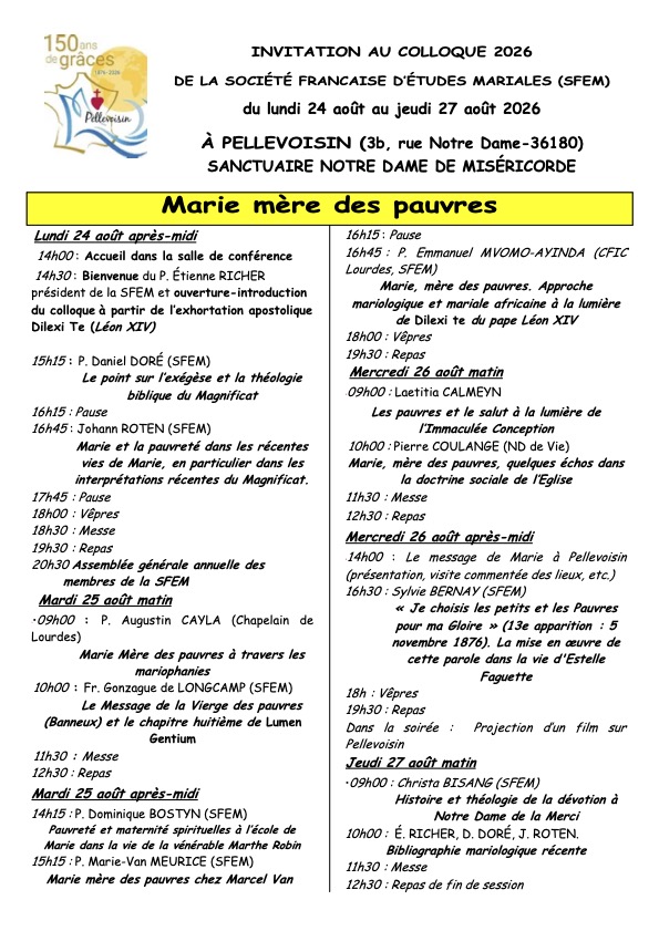 Thème: « MARIE, MÈRE DES PAUVRES ». Télécharger le bulletin programme-inscription en .pdf